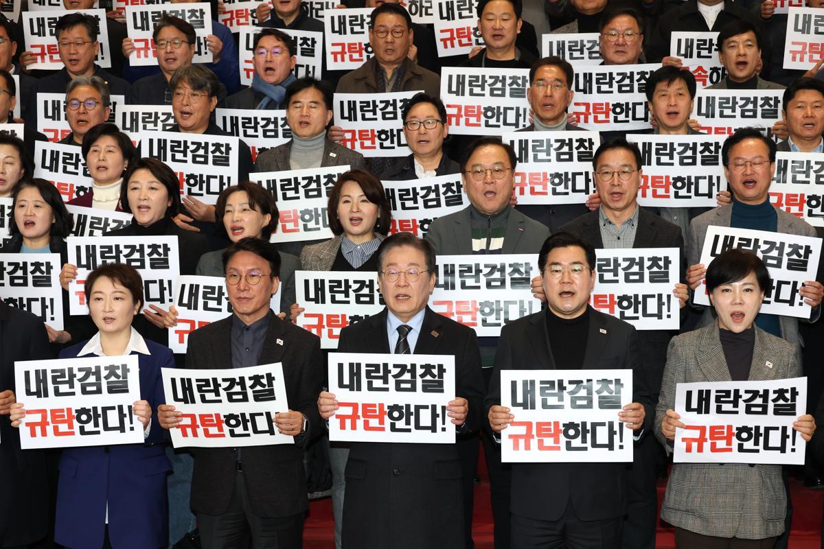 이재명 대표는 9일 “내란 수괴가 희한한 법 해석을 통해서 구속을 면했다는 사실이 여전히 믿기지 않는다”며 “사형 또는 무기징역에 해당하는 (내란) 수괴가 절차상 문제 때문에 석방되는 것을 어느 국민이 납득하겠나”고 했다. 친명계 한 의원도 “심 총장이 구속 기소를 앞두고 대검 차장 및 부장, 전국 고검장과 지검장이 참여하는 회의를 열며 시간을 끄는 바람에 윤 대통령 측 법 기술에 놀아났다. 사실상 한통속 아니냐”고 했다.