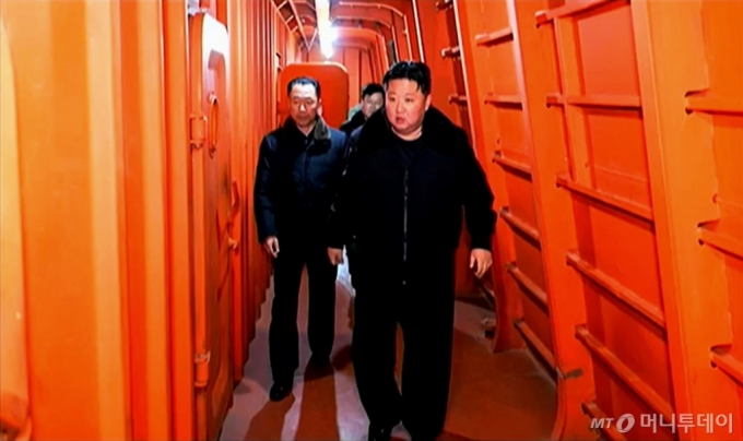 김정은 북한 노동당 총비서 겸 국무위원장이 원자력(핵) 추진 잠수함 등 함선·함정 건조 사업 실태를 시찰했다고 조선중앙TV가 8일 보도했다. / 사진=뉴시스 |