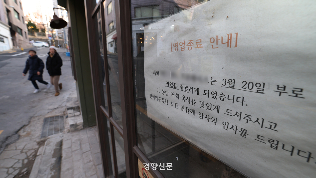 지난해 12월26일 서울 서대문구의 한 점포에 영업종료 안내문이 붙어있다. 정효진 기자 |