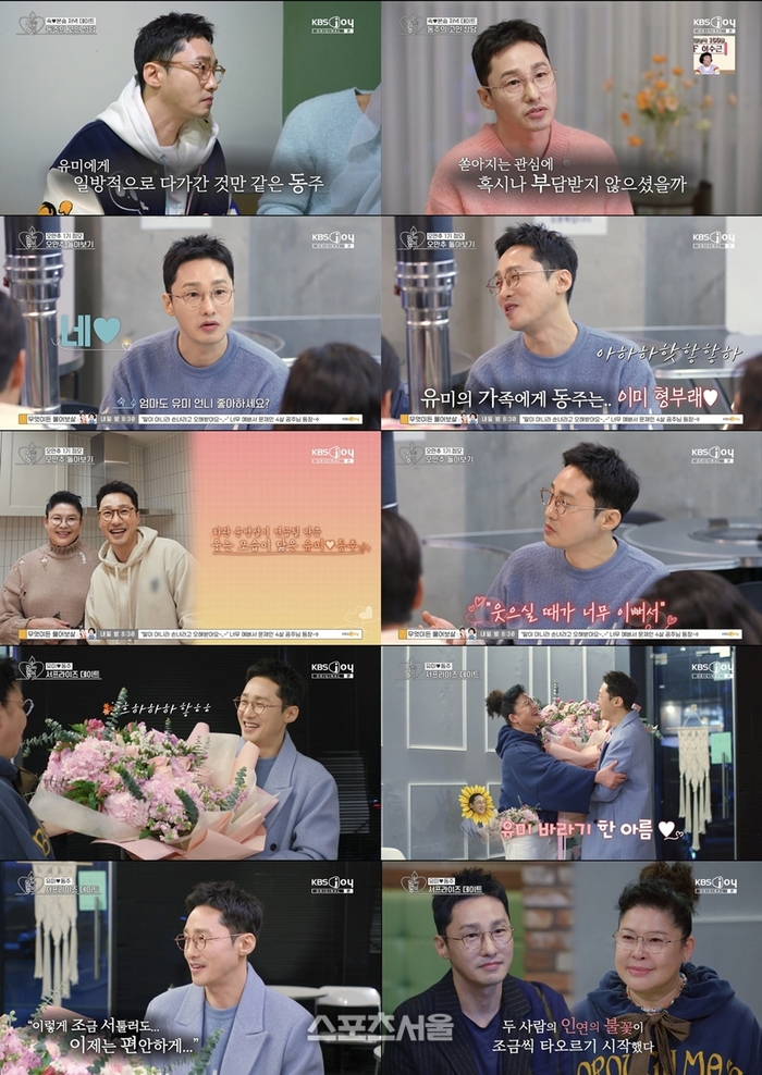 9일 방송된 KBS JOY, KBS2 ‘오래된 만남 추구’(이하 ‘오만추’)에서는 화기애애한 분위기의 ‘오만추 1기’ 정모 현장과 황동주, 이영자의 서프라이즈 데이트가 공개됐다. ‘오만추 1기’ 정모에는 최종 애프터 선택에 성공한 황동주&이영자, 구본승&김숙, 이재황&장서희 그리고 지상렬, 우희진까지 모든 출연진이 자리했다.