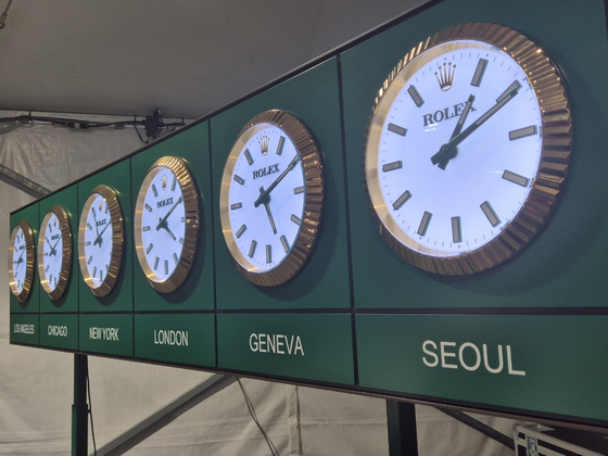 미국 올랜도 베이힐 골프장에서 10일(한국시간) 끝난 PGA(미국 프로골프) 투어 시그니처 대회 아널드 파머 인비테이셔널 미디어센터에는 롤렉스 세계 시계가 걸려 있다. 시계 앞을 지나가다가 뭔가 이상해서 돌아왔다. 한국 표준시 시계에는 일반적으로 쓰이는 도쿄가 아니라 서울이라고 표기됐다.