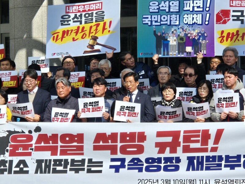 그러면서 “서울구치소를 걸어 나온 윤석열의 행동과 얼굴에서 반성의 흔적이 보이지 않았다”며 “(형사사건과 별개로) 헌법재판소는 윤석열 파면 선고로 새로운 역사의 출발점을 만들어가야 한다”고 밝혔다.