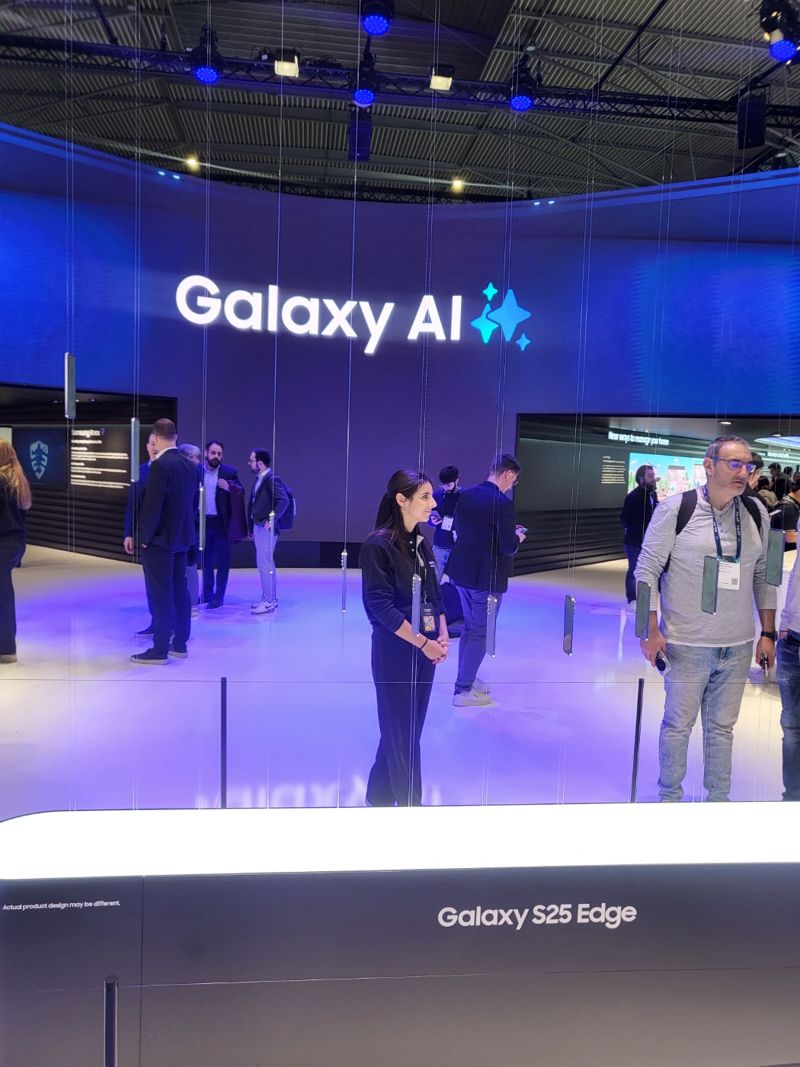 지난 3~6일(현지시간) 스페인 바르셀로나에서 열린 MWC 2025 삼성전자 부스에 '갤럭시S25 엣지'가 전시돼 있다. 사진=장민권 기자 왼쪽부터 갤럭시S25 엣지, 갤럭시S24 울트라, 갤럭시S23 울트라 모형. 삼성전자 제공 |