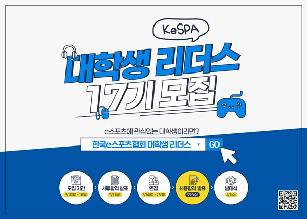 [스포츠투데이 이상필 기자] 한국e스포츠협회가 2025년에 활동할 'KeSPA 대학생 리더스' 17기를 10일부터 모집한다.