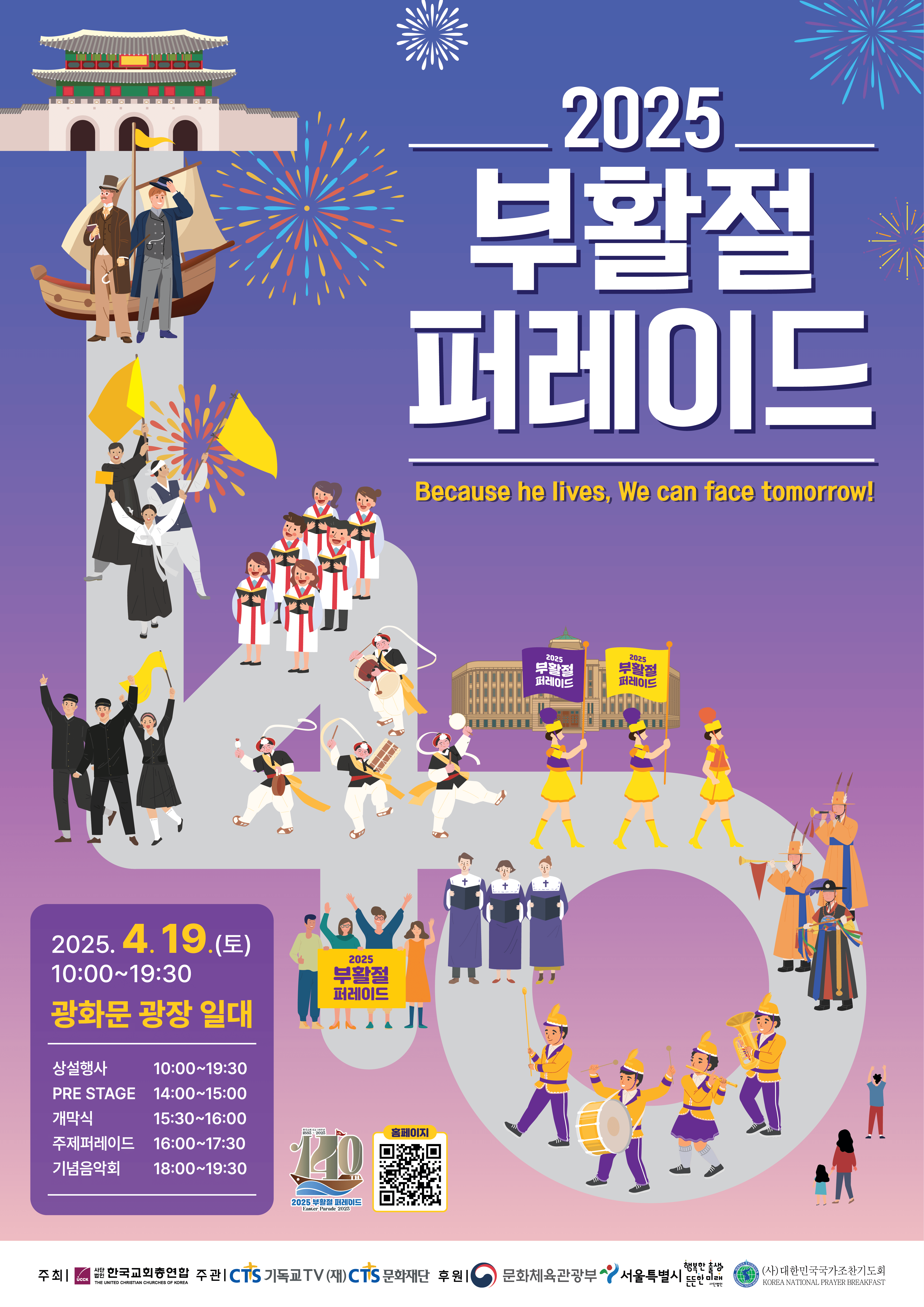 2025 부활절 퍼레이드 대회장 김영걸(예장통합 총회장) 목사는 “광화문이 갈등과 정쟁이 아닌 평화와 희망의 장소가 되어 그 물줄기가 한반도 전체를 덮을 수 있는 계기가 되기를 바란다”고 했고, 감경철 CTS 회장은 “한국 선교 140주년을 맞아 모두가 하나 되는 거룩한 행진이 되도록 최선을 다해 준비할 것”이라고 말했다.