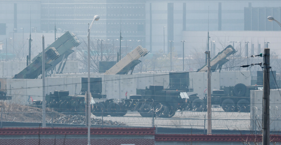 10일 오후 경기 평택시 팽성읍 주한미군기지 캠프 험프리스에 패트리어트(PAC-3) 미사일이 배치되어 있는 모습. 합동참모본부에 따르면, 우리 군은 이날 오후 1시 50분경 북한 황해도 내륙에서 서해상으로 발사된 미상 탄도미사일 수 발을 포착했다. 뉴스1 |