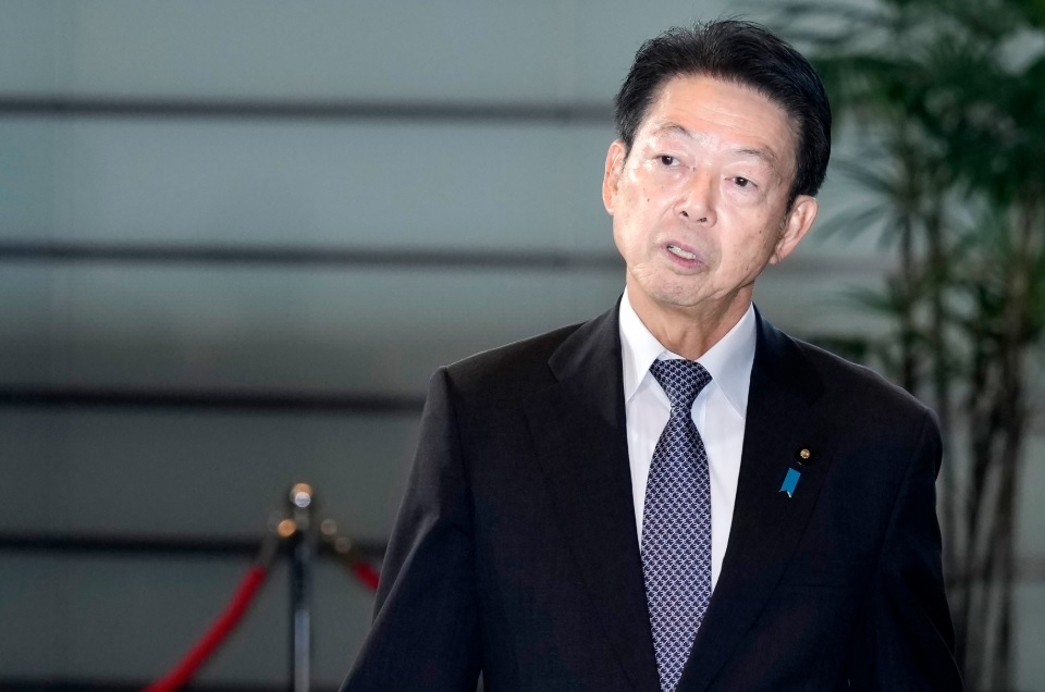 무토 요지 일본 경제산업상(산업장관)이 지난해 10월 도쿄 총리 관저에 도착한 모습. [AP] |