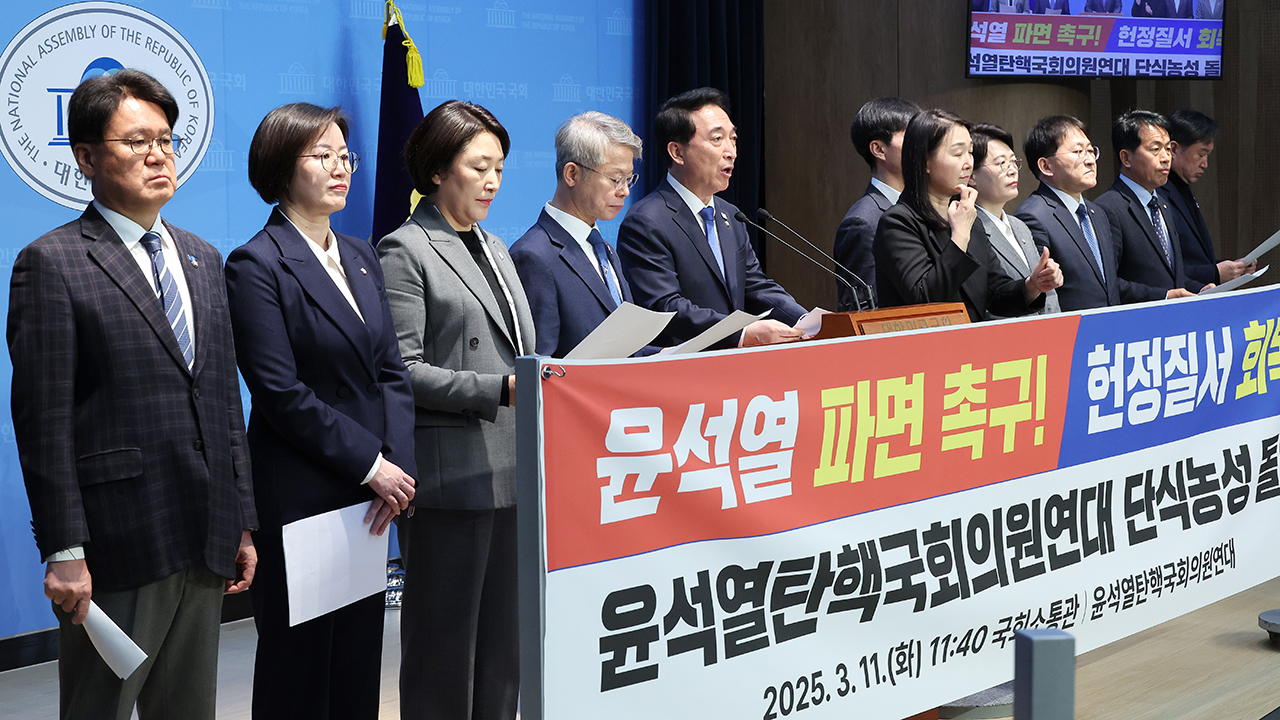 이들은 오늘(11일) 국회 기자회견에서 "헌법재판소의 신속하고 단호한 탄핵 인용을 촉구하며 단식농성을 벌일 것"이라고 밝혔습니다.