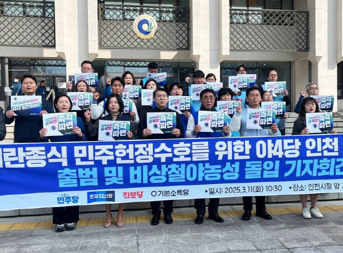 민주당 인천시당은 11일 인천시청 앞 광장에서 진보당 인천시당, 조국혁신당 인천시당, 기본소득당 인천시당과 기자회견을 열고 ‘원내 야4당 인천원탁회의’를 출범한다고 밝혔다.