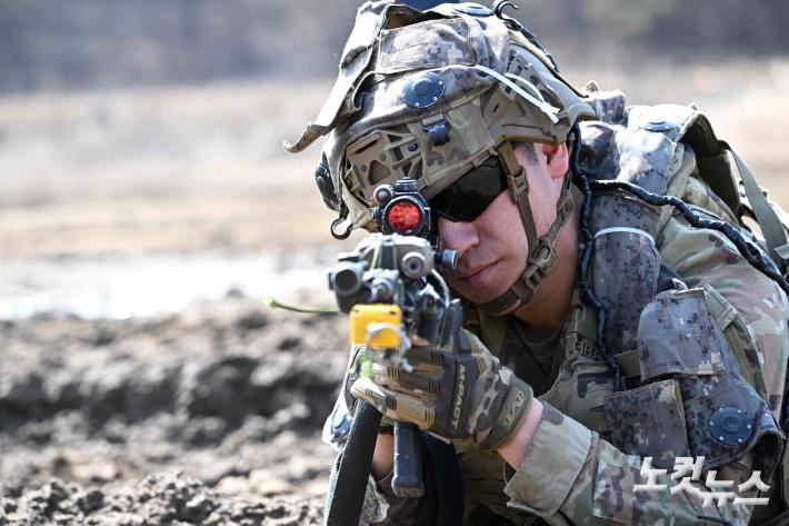 11일 경기도 파주시 법원읍 무건리 훈련장에서 '한미 연합 공중강습 훈련'이 열려 수리온 헬기에서 내린 미군 장병이 목표지역 점령을 위해 전술기동 훈련을 하고 있다. 이날 훈련에는 한국군 90여 명, 미군100여 명이 참가했으며 수리온 6대가 동원됐다.