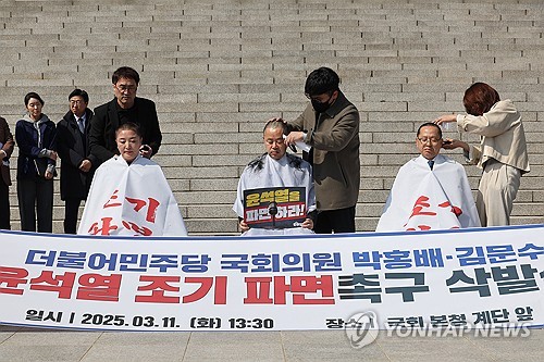 아울러 민주당 박홍배·김문수·전진숙 의원은 윤 대통령의 파면을 촉구하며 이날 국회 본청 앞에서 삭발했다.