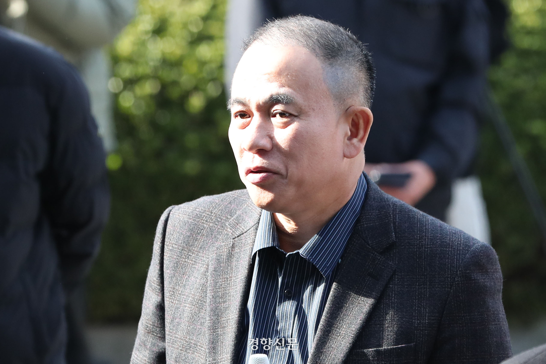명태균씨가 지난해 11월8일 창원지검에 조사를 받기 위해 출석하기 전 취재진 질문에 답하고 있다. 한수빈 기자 |