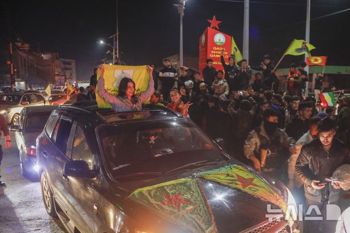 [카미슐리(시리아)=AP/뉴시스] 김재영 기자 = 시리아의 새 중앙 정부와 북동부의 쿠르드족 주도 지방세력이 10일 돌파구와 같은 협정을 체결하자 11일 카미슐리 등 쿠르드족 도시에서 시민들이 거리에 나와 춤을 추며 기뻐했다.