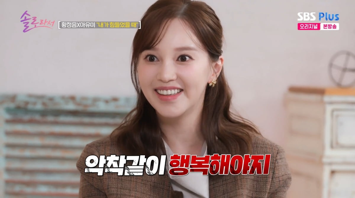 11일 방송된 SBS Plus, E채널 '솔로라서'에서는 황정음 집에 슈가 멤버 아유미, 육혜승이 방문했다.