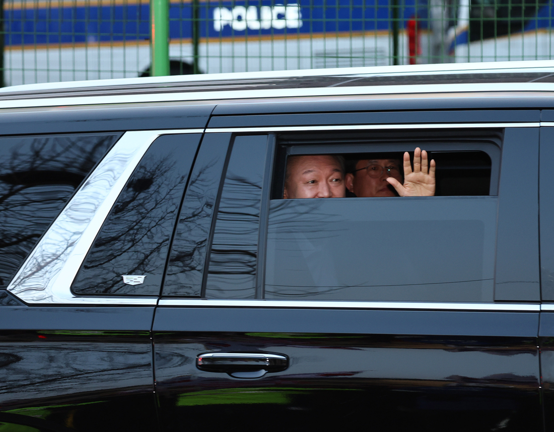 법원으로부터 구속 취소 결정을 받고 서울구치소에서 석방된 윤석열 대통령이 지난 8일 서울 한남동 관저 앞에 도착, 차량에서 지지자들을 향해 인사하고 있다. 연합뉴스 |