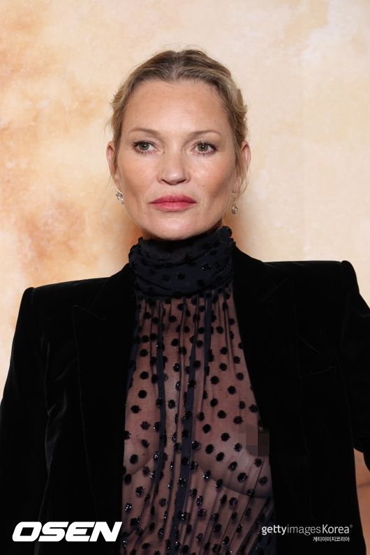 [OSEN=최이정 기자] 전설적인 모델 케이트 모스(51)가 파리 패션 위크에서 당당한 노브라 패션을 선보였다.