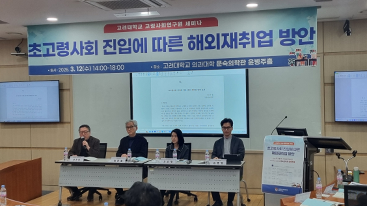 고려대학교 고령사회연구원이 '초고령사회 진입에 따른 해외 재취업 방안' 세미나를 3월 12일 14시에 고려대학교 의과대학 문숙의학관 윤병주홀에서 개최했습니다.