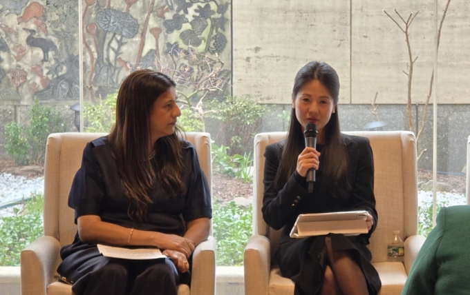 12일(현지시간) 미국 뉴욕 주유엔한국대표부 반기문홀에서 '북한 여성에 대한 성·젠더 폭력 실태 조명 및 책임규명 모색'을 주제로 열린 유엔 여성지위위원회(CSW) 부대행사에서 한 참석자를 질의를 하고 있다. /사진=심재현 기자 |