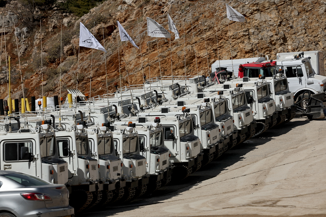 이스라엘군 차량이 지난 4일(현지시간) 시리아 남부 완충지대인 헤르몬산에 세워져 있다. EPA연합뉴스 |