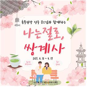 (서울=연합뉴스) 이세원 기자 = 대한불교조계종사회복지재단은 다음 달 18∼19일 경남 하동군 소재 쌍계사에서 미혼 남녀에게 만남의 기회를 제공하는 템플스테이 '나는 절로, 쌍계사'를 개최한다고 13일 밝혔다.