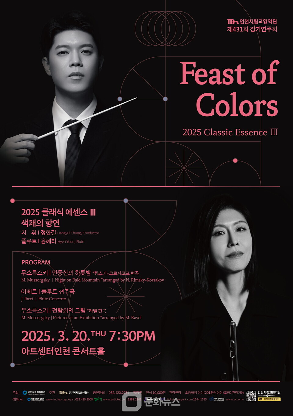 이번 공연은 '색채의 향연'이라는 부제로 진행되며, 지휘자 정한결이 이끄는 인천시향이 이베르의 '플루트 협주곡', 무소륵스키의 '전람회의 그림', '민둥산의 하룻밤' 등을 연주할 예정이다.