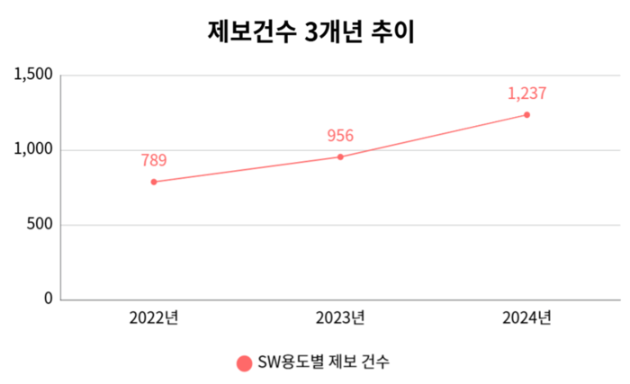 한국소프트웨어저작권협회는 이 같은 내용을 담은 '2024년 불법복제 SW 사용 제보 통계'를 발표했다.