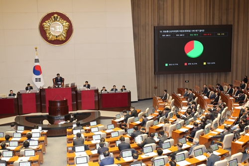 오늘(13일) 열린 본회의에서 사퇴 촉구 결의안은 재석 의원 240명 가운데 찬성 153명 반대 87명으로, 감사요구안은 재석 의원 242명 가운데 찬성 156명 반대 86명으로 가결됐습니다.
