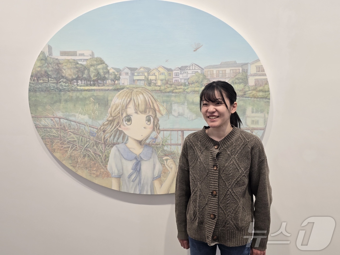 13일 에미 쿠라야 작가가 '해피 버니' 개인전에서 기자간담회를 진행하고 있다. ⓒ 뉴스1 김정한 기자 |