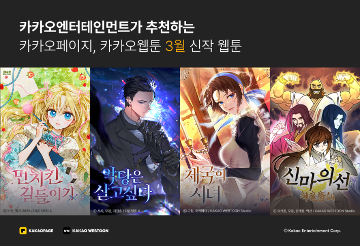 카카오엔터테인먼트가 카카오페이지와 카카오웹툰에 연재 되는 3월 신작 웹툰 4종을 선보인다고 14일 밝혔다.