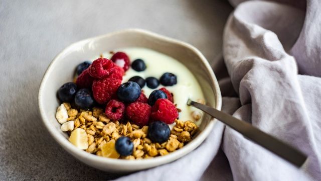 베리류와 아몬드를 곁들인 플레인 그릭 요거트는 칼슘이 풍부한 건강 간식이다. 박주연 영양사는 "요거트, 치즈 등 유제품은 칼슘 함량이 높고 흡수율도 우수한 대표적인 칼슘 급원 식품"이라며 "칼슘이 풍부한 아몬드 등과 함께 곁들여 먹을 것을 권한다"라고 설명했다. 영양사 제니퍼 하우스(Jennifer House)에 따르면 그릭 요거트에는 한 컵에 약 250mg의 칼슘이 들어 있으며 아몬드 1온스를 추가하면 총 326mg의 칼슘을 섭취할 수 있다. 이때 베리류를 넣어 먹을 수도 있는데, 베리류는 섬유질과 항산화 성분을 더해줄 수 있다.