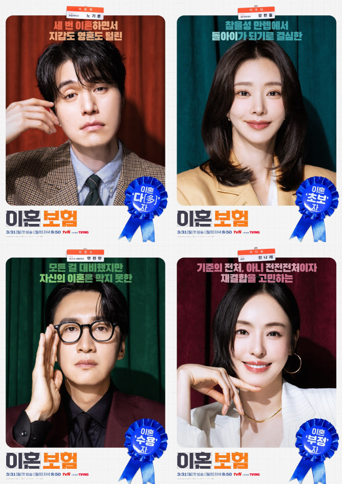 지난 12일 '이혼보험' 제작진은 이동욱, 이주빈, 이광수, 이다희 등 주요 출연진의 캐릭터 포스터를 공개했다. 이번 작품은 보험회사 혁신상품개발팀에서 '이혼보험'이라는 독특한 상품을 개발하며 벌어지는 유쾌한 이야기를 그린다.