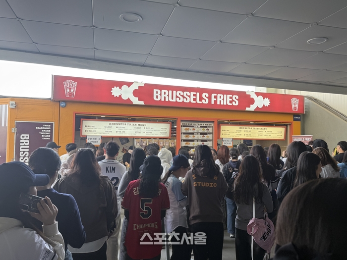 해당 매장은 올해 잠실구장에 새롭게 입점한 감자튀김 전문 브랜드 매장이다. 이 브랜드는 SNS에서 이미 뜨거운 인기를 얻고 있다. 그 명성이 야구장까지 이어지면서 두산 팬들의 관심을 한 몸에 받았다.