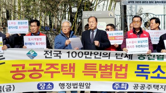 공공주택지구 전국연대 대책협의회는14일 기자회견을 갖고, 공공주택특별법 개정을 촉구했다. 공전협 제공. |