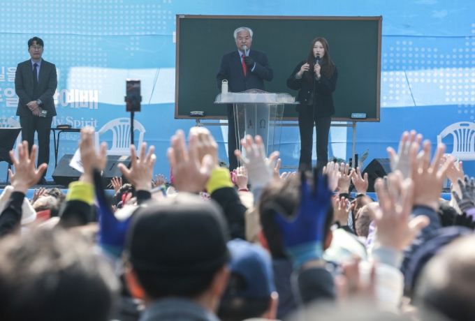 앞서 전 목사가 이끄는 자유통일당은 전날(15일)에도 같은 장소에서 탄핵 반대 집회를 열었다. 그는 연단에 올라 "이번 주가 전쟁"이라며 "(대통령 탄핵 심판이) 분명 8 대 0으로 각하될 것"이라고 주장했다.