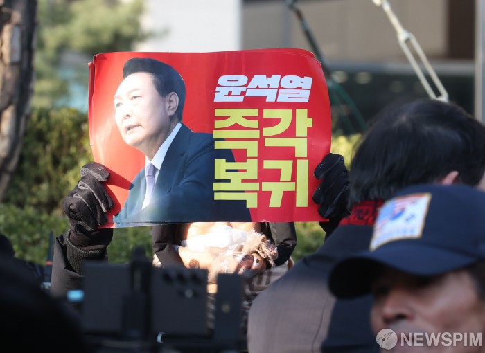 [서울=뉴스핌] 이호형 기자 = 윤석열 대통령 탄핵 반대하는 자유문화국민연합 등 보수단체가 16일 오후 서울 종로구 안국역 3번 출구 현대사옥 앞에서 탄핵각하 촉구 문화콘서트를 연 가운데 탄핵 반대 구호를 외치고 있다.2025.03.16 leemario@newspim.com