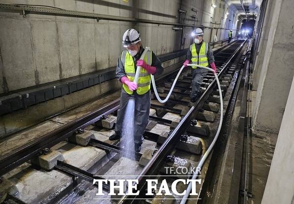 [더팩트ㅣ대전=선치영 기자] 대전교통공사는 시민들의 건강을 보호하고 대중교통 이용 환경을 개선하기 위해 도시철도 터널 전 구간에 걸쳐 대대적인 물청소를 지난 10일부터 매일 야간에 시행하고 있다고 17일 밝혔다.