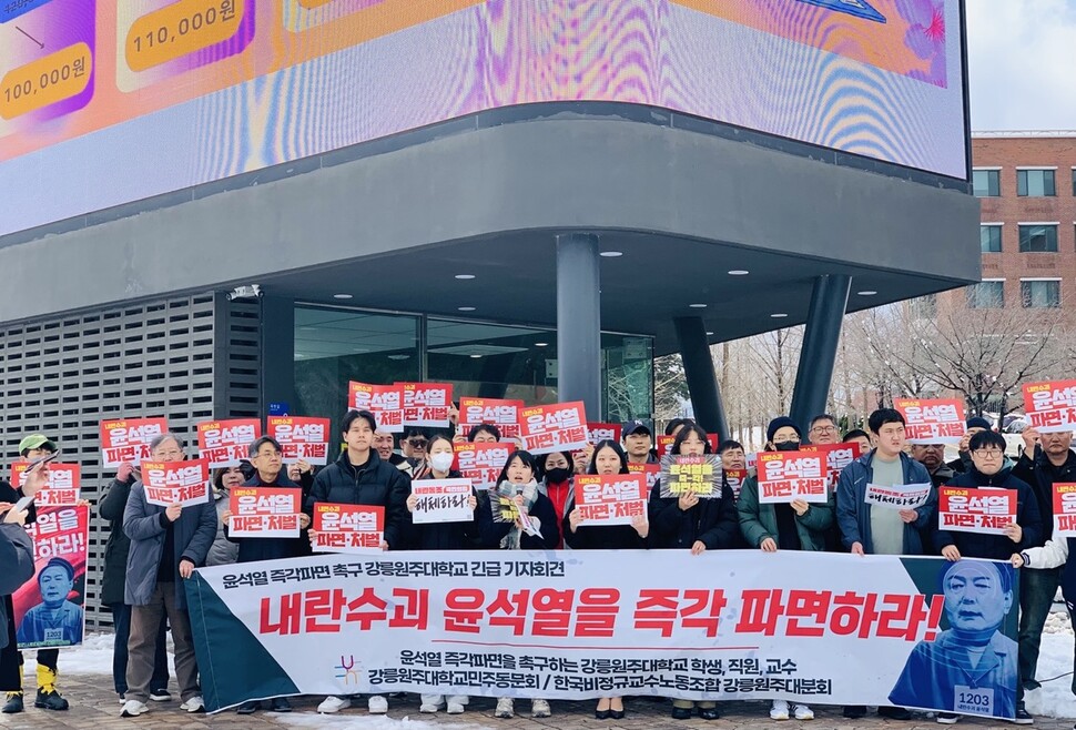 강릉원주대 학생·교수·직원 등이 윤석열 대통령 즉각 파면을 촉구하고 나섰다.