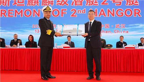 13일 중국 후베이성 우한에서 열린 파키스탄 한고르급 잠수함 진수식 |