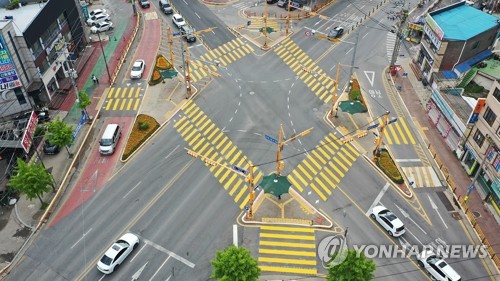 초등학교 어린이보호구역 주변 노란색 횡단보도 |