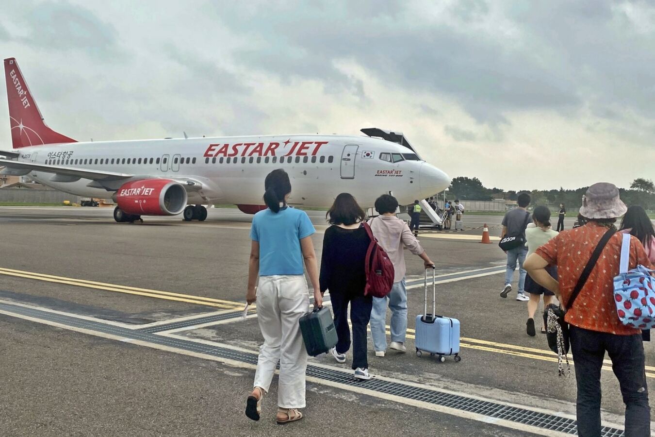 지난해 9월 전북 군산공항을 찾은 수 많은 승객들이 제주행 이스타항공기에 탑승하기 위해 이동하고 있다. 하지만, 항공사 측은 한 달 뒤인 10월 27일 여객 수요 감소를 이유로 동절기 노선 운항을 중단했다. 군산=김동욱 기자 |