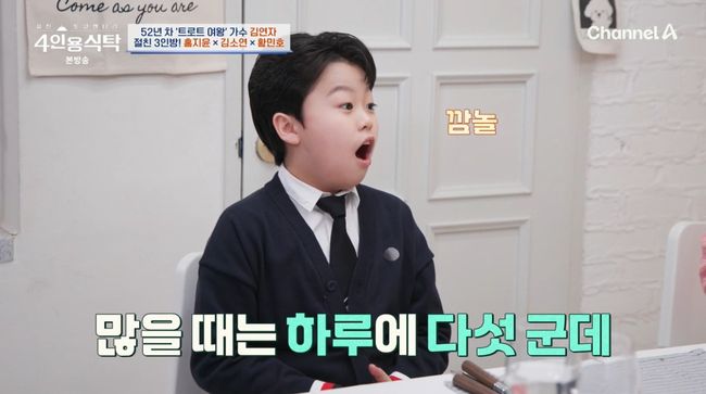 식사 후 김연자, 홍지윤, 김소연, 황민호는 오디션 출신, 이른 나이에 데뷔했다는 공통점으로 대화를 이어갔다. 먼저 황민호는 “4~5살 때 형의 공연을 따라다니면서 나도 잘할 수 있다고 생각했다. 아버지가 트로트를 많이 들으셔서 저도 모르게 스며들었다. 데뷔 무대는 5년 전 ‘미스터트롯’이었다. 형의 무대에 카메오로 등장하면서 데뷔했고, 1년 후 트로트 경연에 또 도전했다”면서 ‘블링블링’ 라이브와 장구 퍼포먼스로 폭풍 성장을 증명했다.