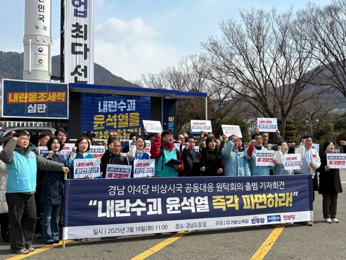 이들은 "국민과 국회를 위협한 내란 수괴 윤석열이 석방되는 중대한 사태가 발생했다"라며 "불안해하는 경남도민들과 함께 이 위기를 극복할 수 있도록 경남 야4당이 공동대응을 통해 최선을 다하겠다"고 밝혔다.