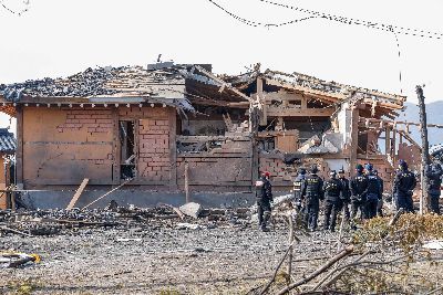 포천 승진훈련장에서 열린 한미연합훈련 중 포탄이 민가에 떨어져 인명 피해가 발생한 가운데 7일 경기 포천 이동면 노곡리 민가에서 합동감식반이 현장감식을 하고 있다. 2025.3.7. 강진형 기자 |