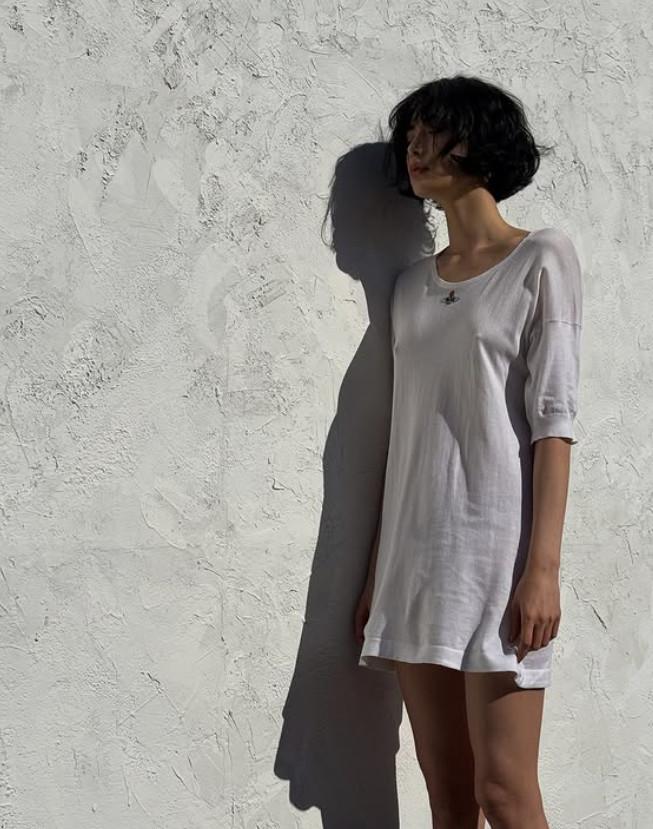 사진 속 나나는 흰 티를 걸친 채 눈을 감고 있는가 하면, 과도하게 꾸미지 않은 자연스러운 메이크업으로 순수한 분위기를 자아낸다. 특히 나나는 이 의상에서 노브라로 자연스러움을 배가했다.