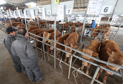 긴장감 속 우시장 출입까지 '삼중 방역'…방역복 입고 송아지 경매