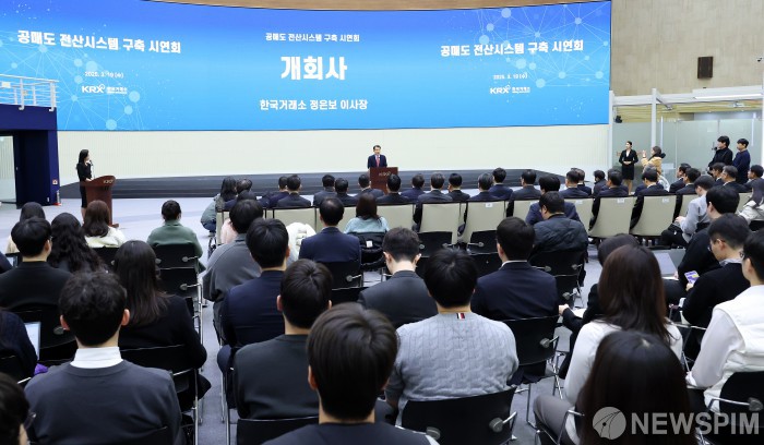[서울=뉴스핌] 정일구 기자 = 정은보 한국거래소 이사장이 19일 오전 서울 여의도 한국거래소 홍보관에서 열린 공매도 전산시스템 구축 시연회에서 개회사를 하고 있다. 2025.03.19 mironj19@newspim.com |