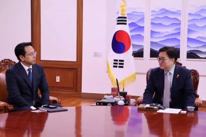 우원식 국회의장이 19일 오전 서울 여의도 국회에서 배달 플랫폼 '배달의 민족'을 운영하는 김범석 우아한형제들 대표를 만났다. /사진=우원식 의장 SNS |