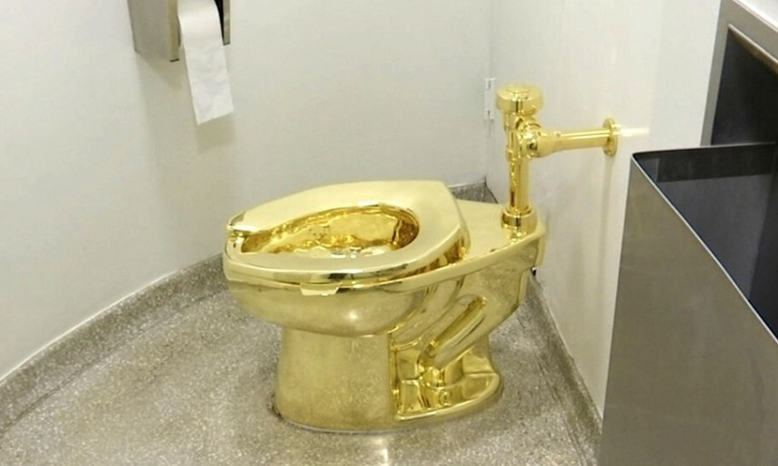도난된 황금 변기는 ‘현대 미술계의 악동’으로 불리는 이탈리아 작가 마우리치오 카텔란의 대표작으로, 그 가치는 480만파운드(약 90억6000만원)에 이른다. 양변기 뚜껑부터 레버까지 모두 금으로 이뤄졌고, 배관과 연결되어 실제 사용할 수 있게 만들어졌다.