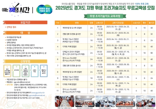 교육은 3월부터 12월까지 수원시에 위치한 한국조리사협회중앙회 경기도지회에서 총 11회 252명 규모로 운영한다. 도는 지난 19일 2025년 1기 개강식을 열고 교육에 들어갔다.