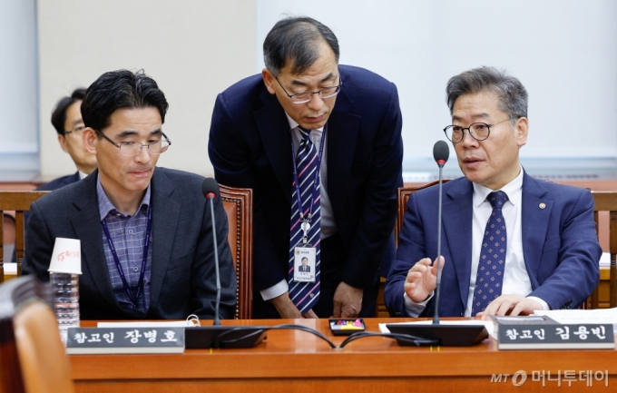 (서울=뉴스1) 안은나 기자 = 김용빈 중앙선거관리위원회 사무총장이 6일 오후 서울 여의도 국회 행정안전위원회에서 열린 김대웅 중앙선거관리위 후보자 인사청문회에 참고인 신분으로 출석하고 있다. 왼쪽은 장병호 정보보호과장. 2025.3.6/뉴스1 Copyright (C) 뉴스1. All rights reserved. 무단 전재 및 재배포, AI학습 이용 금지. /사진=(서울=뉴스1) 안은나 기자 |